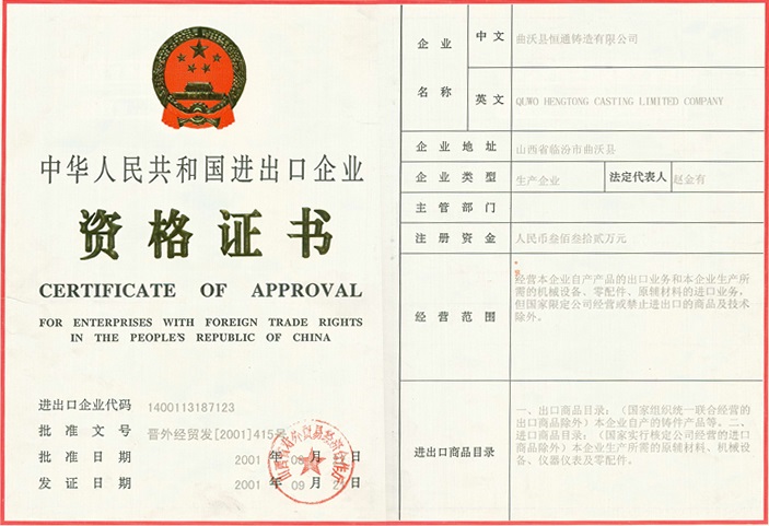 中華人民共和國(guó)進(jìn)出口企業(yè)資格證書